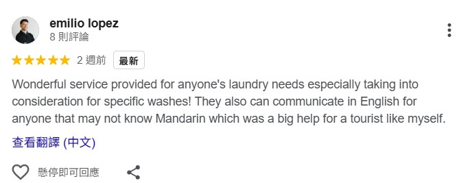 每件衣物都會事先確認材質、標示處理方式並核對交件,若衣物有破損、或嚴重污漬,都會提前告知顧客,讓洗衣過程滿意又愉快